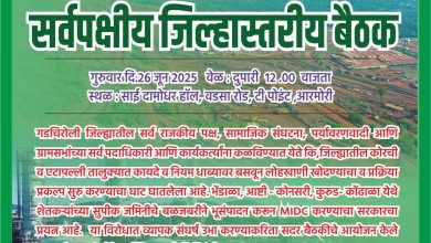 बळजबरी भूसंपादन आणि विनाशकारी प्रकल्पांच्या विरोधात आक्रोश * व्यापक संघर्षासाठी उद्या आरमोरीत सर्वपक्षीय बैठकीचे आयोजन