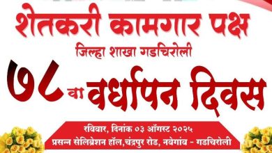 AVB NEWS गडचिरोली : राज्यातील कष्टकरी, कामगार, शेतकरी, शेतमजूर बहुजन श्रमिकांच्या हक्क – अधिकारासाठी लढणाऱ्या शेतकरी कामगार पक्षाच्या ७८ व्या…