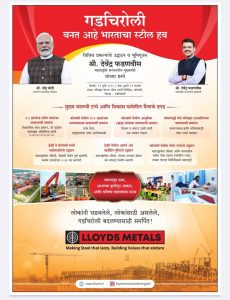 AVB NEWS गडचिरोली, : सतत प्रगतिशील महाराष्ट्राच्या विकासात आणि गडचिरोली जिल्ह्याच्या औद्योगिक क्रांतीत एक नवा अध्याय सुरू करत मुख्यमंत्री देवेंद्र फडणवीस मंगळवार (ता. २२) कोनसरी येथे होणाऱ्या एका भव्य समारंभात लॉयड्स मेटल्स अँड एनर्जी लिमिटेड (एलएमईएल) च्या विविध प्रकल्पांचे उद्घाटन तसेच कंपनीच्या भव्य एकात्मिक पोलाद प्रकल्पाची पायाभरणी करणार आहेत.