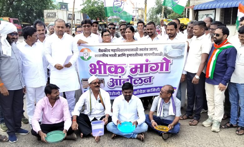 मेडीकल कॉलेजच्या जागेसाठी कॉंग्रेसने केले ‘भिक मांगो आंदोलन’ **मुख्यमंत्री हेच गडचिरोलीचे पालकमंत्री असतांनाही कॉलेजसाठी अद्यापही जागा उपलब्ध झाली नाही