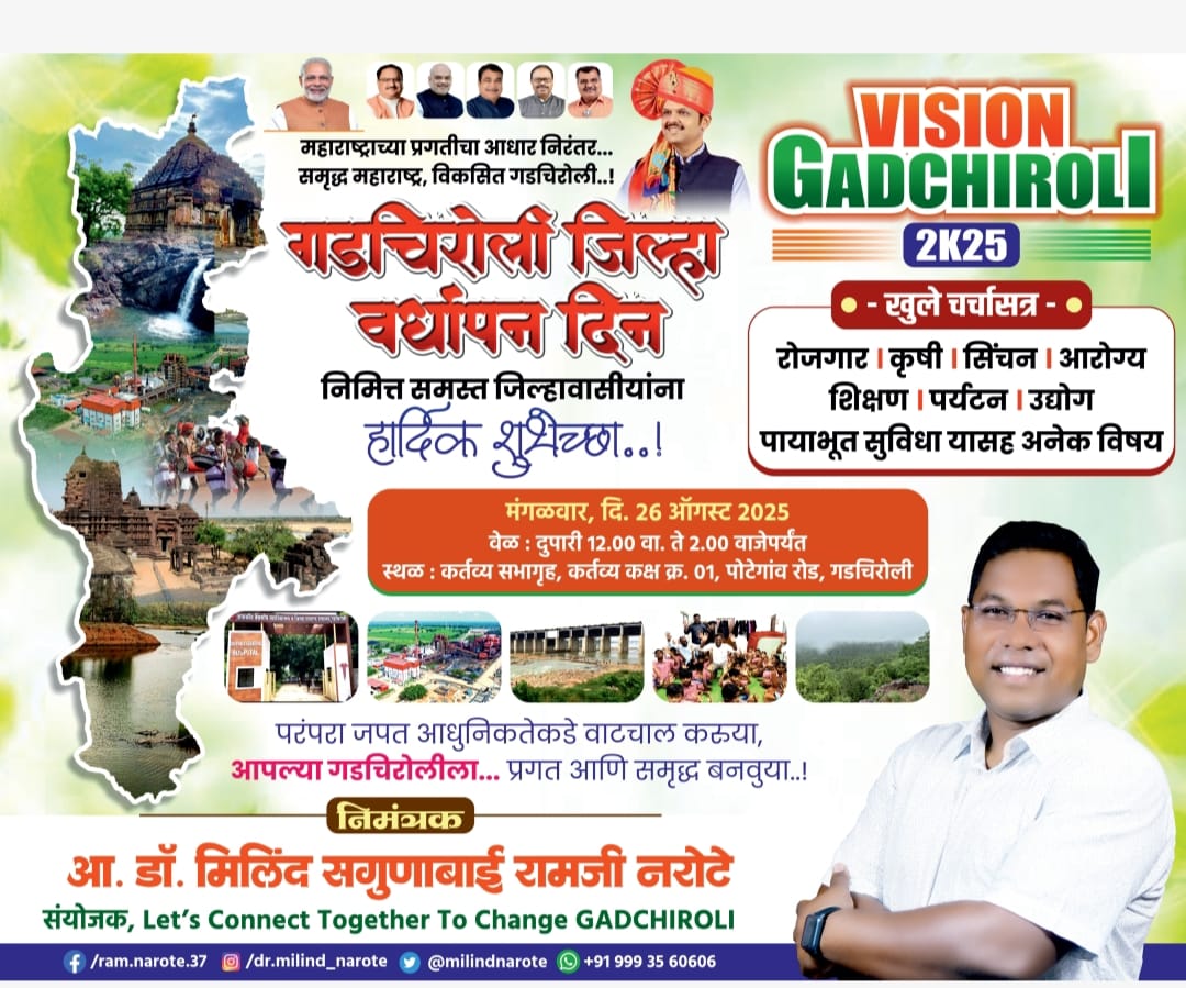 Home/जिल्हा/समस्त जिल्हावासीयांना गडचिरोली जिल्हा वर्धापन दिनाच्या शुभेच्छा ! शुभेच्छूक :- मा. आमदार डॉ. मिलींदजी नरोटे साहेब, गडचिरोली विधानसभा क्षेत्र जिल्हा समस्त जिल्हावासीयांना गडचिरोली जिल्हा वर्धापन दिनाच्या शुभेच्छा ! शुभेच्छूक :- मा. आमदार डॉ. मिलींदजी नरोटे साहेब, गडचिरोली विधानसभा क्षेत्र AVB NEWSAugust 26, 2025 SHARE AVB NEWSAugust 26, 2025 Share Facebook Twitter WhatsApp Telegram Print