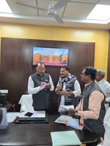 जिल्यातील अनेक तलाठी कार्यालय जीर्ण झाले आहे. व काही ठिकाणी तलाठी कार्यालय भाड्याच्या खोलीत कामकाज सुरू आहे. त्यासाठी तलाठी कार्यालयाची स्वमालकीची इमारत असणे आवश्यक आहे. तरी तलाठी कार्यालयाचे बांधकाम व दुरुस्ती करण्यासदर्भात महसूल मंत्री चंद्रशेखर बावणकुळे याना भेट देऊन दिवेदन सादर केले. यावेळी मंत्री महोदयांनी या मागणीची दखल घेऊन लवकरात लवकर कामे मार्गी लावण्याची ग्वाही दिली.
