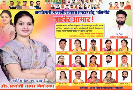 Home/जिल्हा/गडचिरोली शहरातील मतदार बंधू भगिनींचे जाहीर आभार….! अॅड. प्रणोतीताई सागर निंबोरकर ( नवनिर्वाचीत नगराध्यक्ष गडचिरोली ) जिल्हा गडचिरोली शहरातील मतदार बंधू भगिनींचे जाहीर आभार….! अॅड. प्रणोतीताई सागर निंबोरकर ( नवनिर्वाचीत नगराध्यक्ष गडचिरोली ) AVB NEWSDecember 27, 2025 SHARE AVB NEWSDecember 27, 2025 Share Facebook Twitter WhatsApp Telegram Print