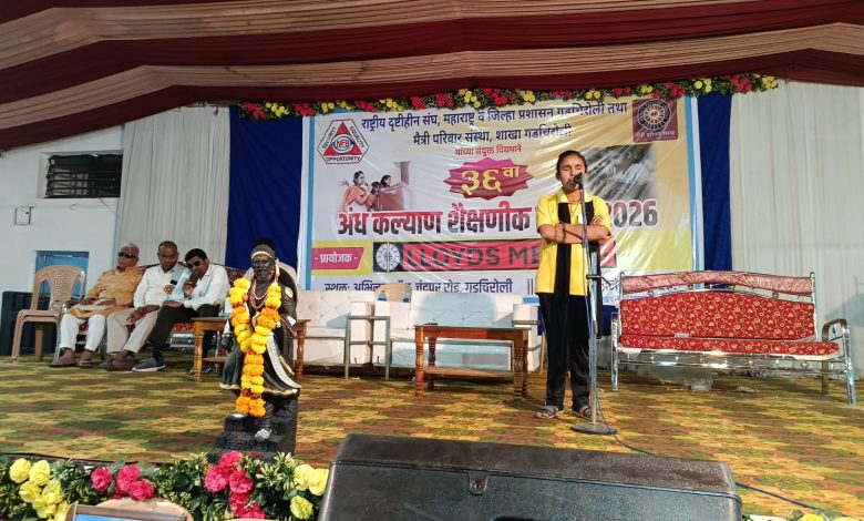 राष्ट्रीय दृष्टीहीन संघ व मैत्री परिवार शाखा गडचिरोलीच्या वतीने स्थानिक अभिनव लॉन मध्ये ८ ते १२ जानेवारी पर्यंत राज्यभरातील अंध विद्यालयातील विद्यार्थ्यांसाठी 36 व्या ‘अंध कल्याण शैक्षणिक सप्ताह 2026’ चे आयोजन करण्यात आले आहे. गडचिरोली जिल्हयात अंध विद्यार्थ्यांसाठी विद्यालय नसतांनाही मैत्री परिवार संस्था गडचिरोलीचे अध्यक्ष निरंजन वासेकर यांनी राष्ट्रीय दृष्टीहीन संघाच्या मदतीला धावून येत गडचिरोली शहरात अंध कल्याण शैक्षणिक सप्ताहाच्या आयोजनात मोलाची भूमिका बजावून मानवता व सामाजिक बांधीलकीचे दर्शन घडविले आहे. त्याचबरोबर श्री साई इन्स्टीटयुट तथा नर्सिग कॉलेज वाकडी, लॉयड मेटल्स लि. व पोलीस विभागाचे सुध्दा या कार्यक्रमाला मोठे पाठबळ मिळाले.