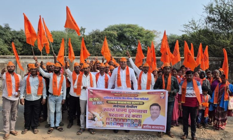 राष्ट्रीय अन्न सुरक्षा अधिनियम २०१३ अंतर्गत प्रत्येक शिधापत्रिकाधारकांना धान्य वितरीत करणे ही स्वस्त धान्य दुकानदाराची जबाबदारी आहे परंतू गडचिरोली तालुक्यातील मरेगाव येथील राशन दुकानदाराकडून धान्याचा काळबाजार करण्यात येत असून शिधापत्रिकांना धान्यापासून वंचीत ठेवण्यात येत आहे शिधापत्रिकाधारक दुकानदारास धान्याबाबत विचारणा केली असता उडवाउडवीची उत्तर दिली जातात. गोरगरीब नागरिकांना धान्यापासून वंचीत ठेवणाऱ्या मरेगाव येथील स्वस्त धान्य दुकानाचा परवाना रद्द करून दुकानदारावर कारवाई करण्यात यावी अशी मागणी सामाजिक कार्यकर्ते अरविंदभाऊ कात्रटवार व मरेगाव येथील नागरिकांनी प्रशासनाकडे रेटून धरली.